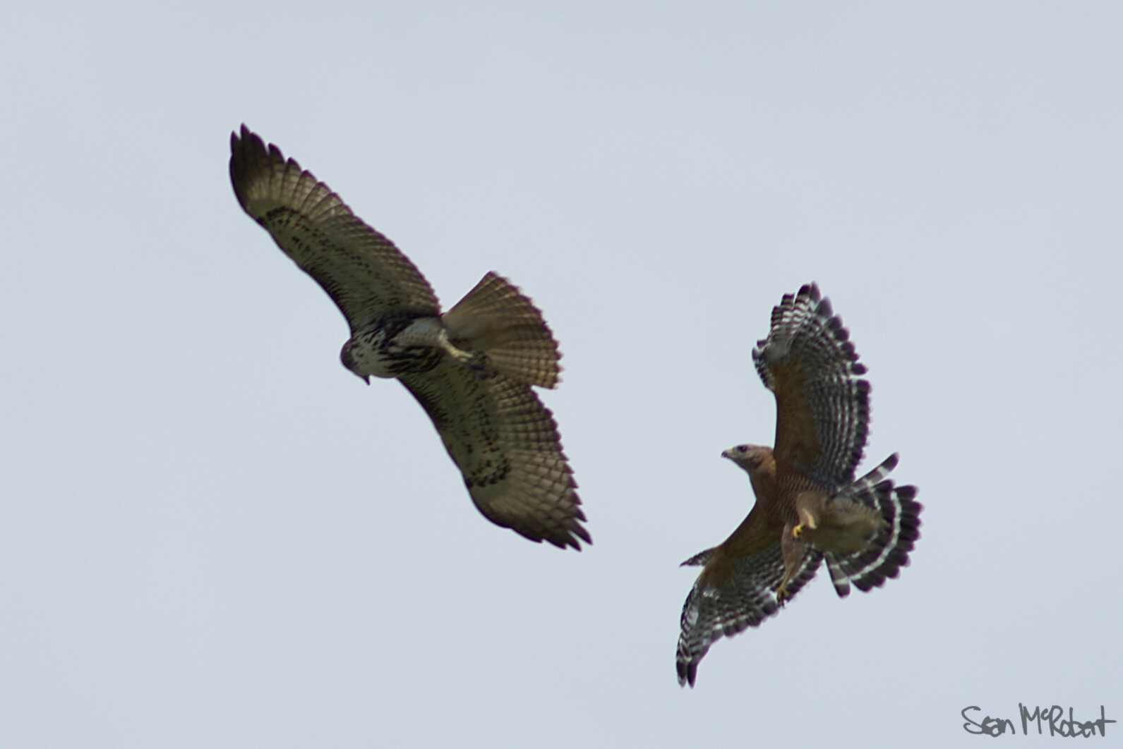 Juvinile Red-tailed Hawk Mobbed by Red-houldered Hawk