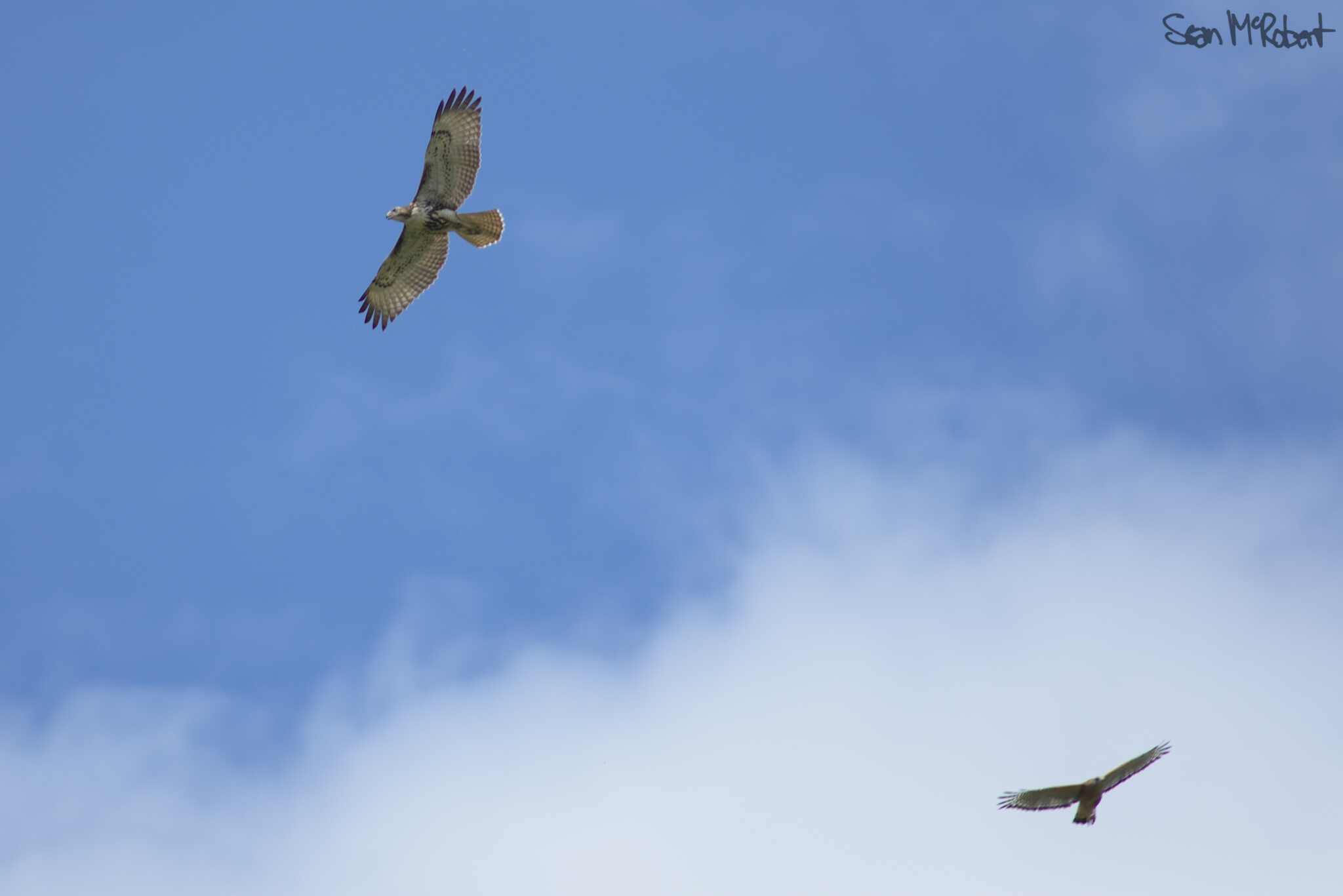 Juvinile Red-tailed Hawk Mobbed by Red-houldered Hawk